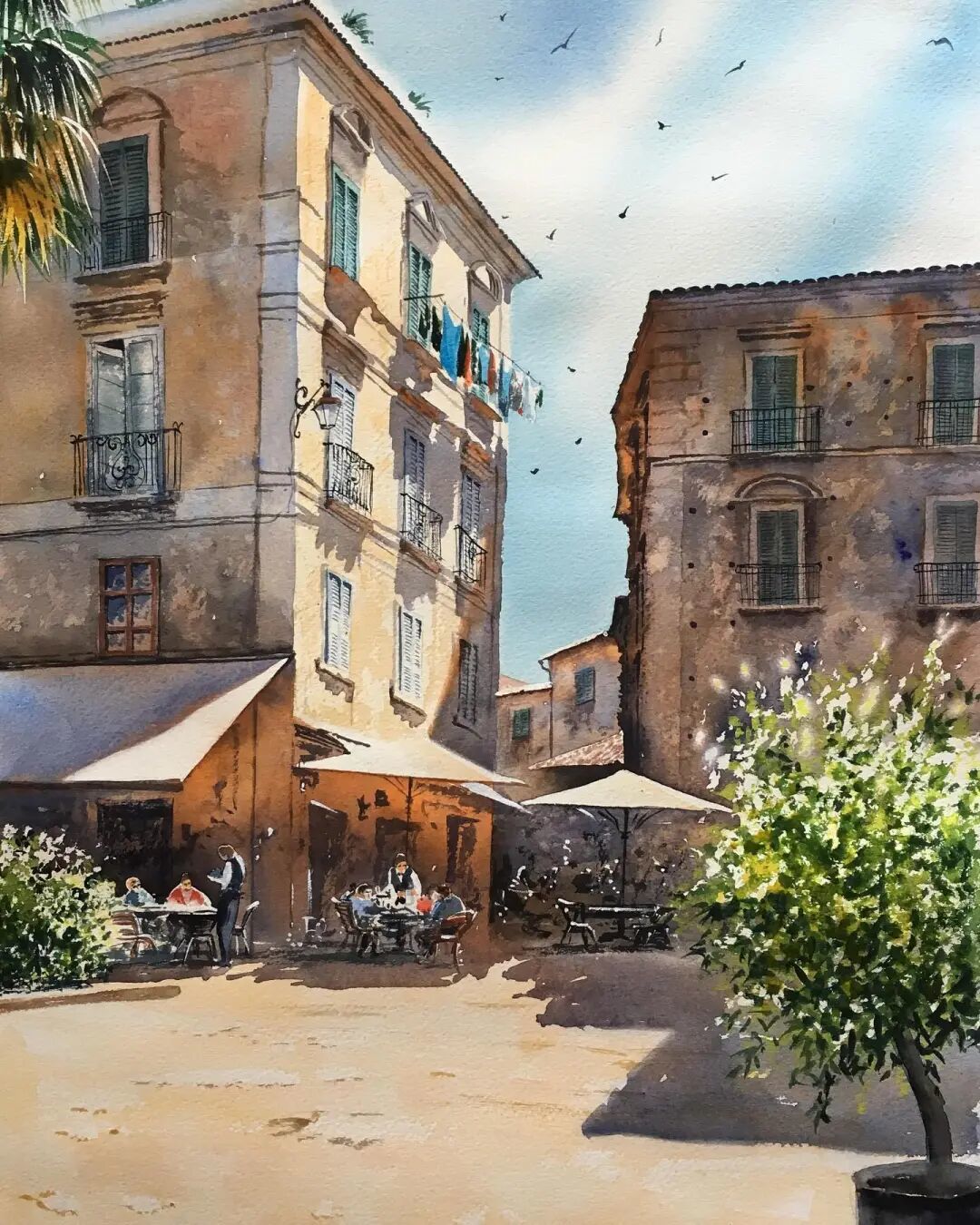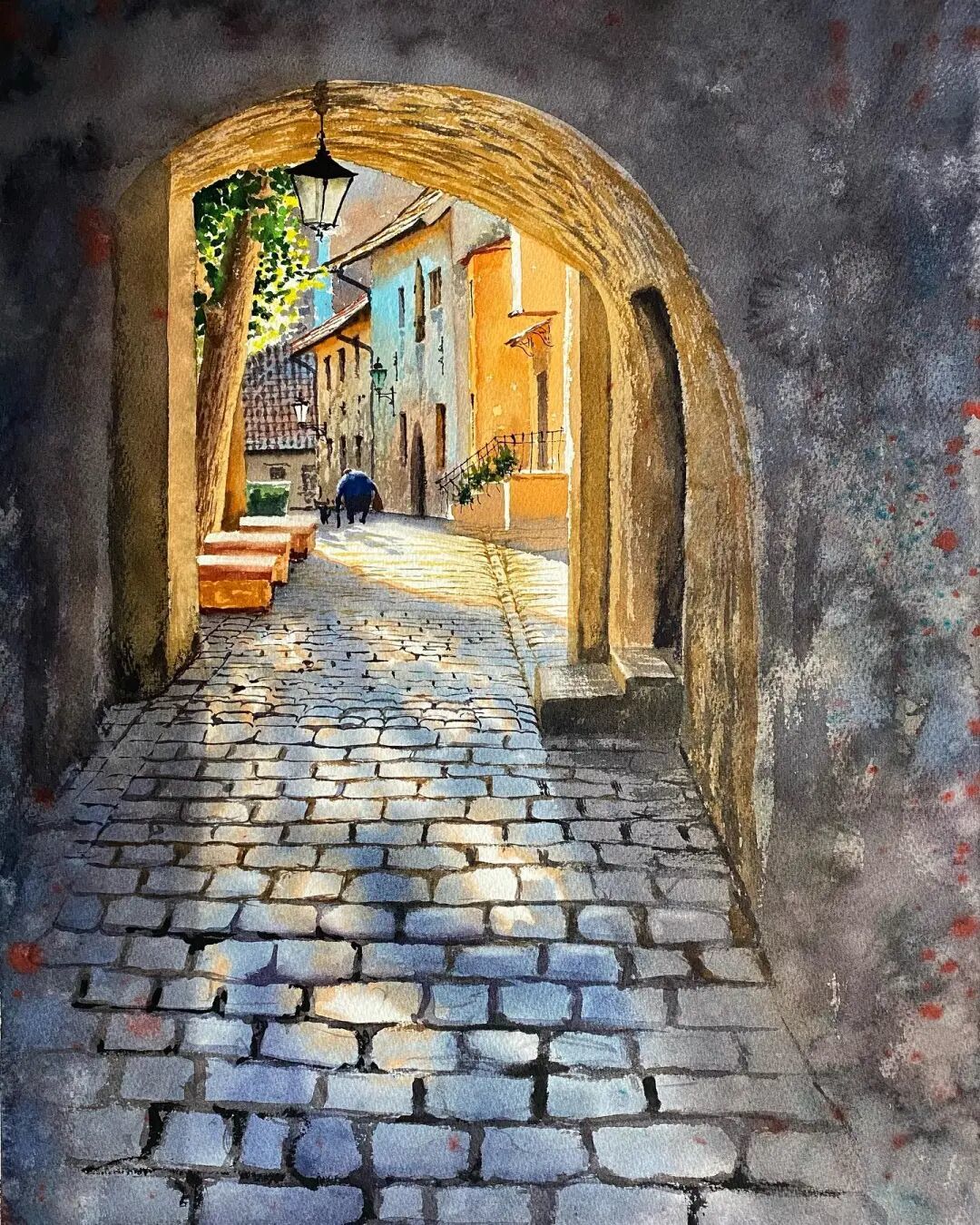 △一回构兵中国古镇的水彩写生