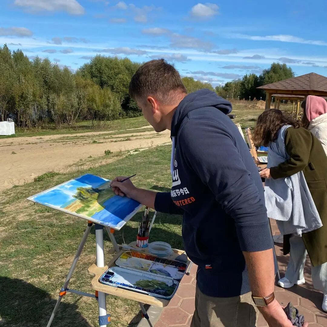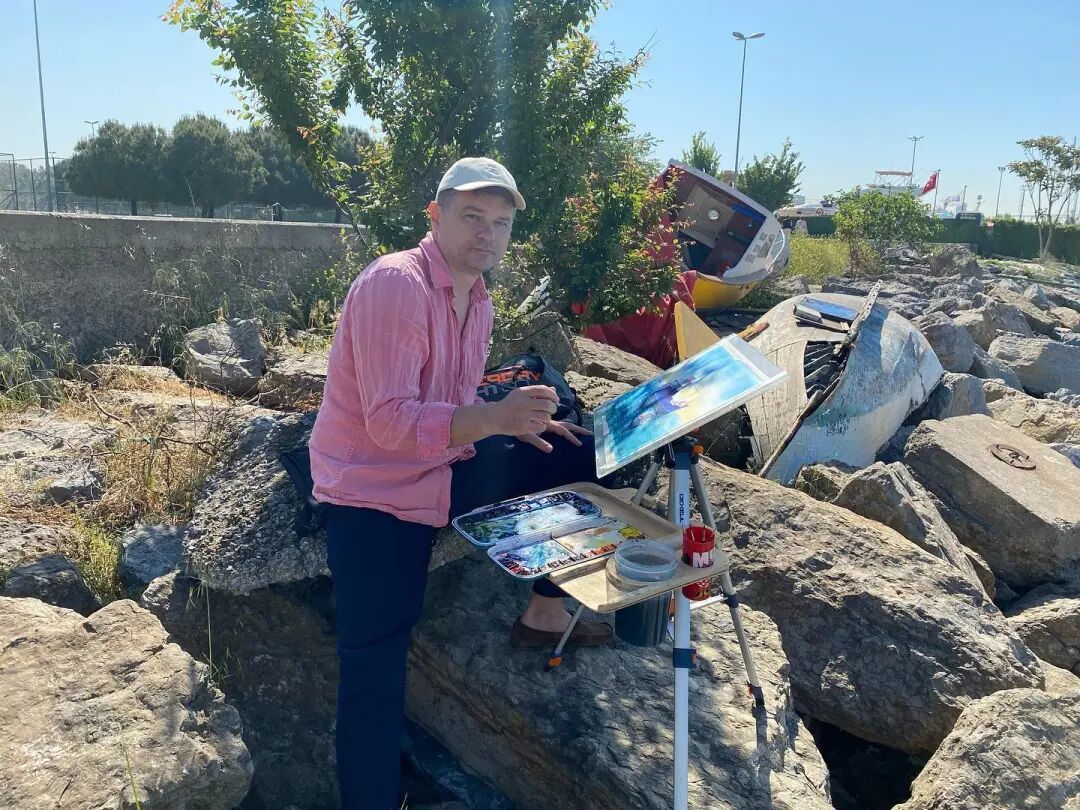 △在户外写生的Igor Dubovoy