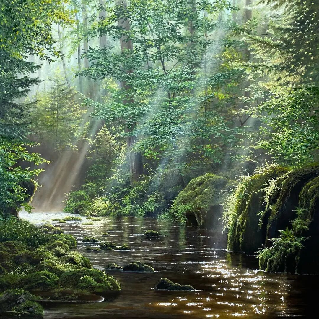 林中的树,地上的水,天上的光... ...