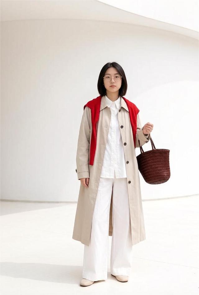 纯白T恤和卡其色风衣保抓不变的情况下,中间加一件低V领毛衣或马甲脉络明确,经典口舌卡其配色既符合平时接管也能肃肃场合码住,三者搭配也能普及举座魄力。