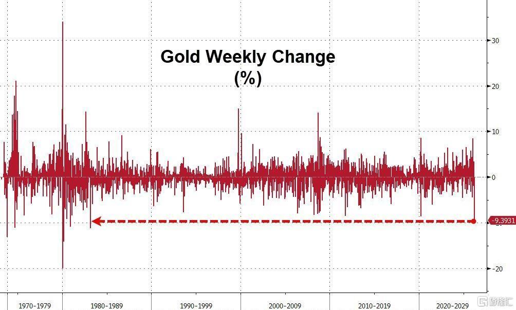 历史数据流露,本次黄金的跌幅恰是43年前那场"卖金筹资"风暴以来最惨烈的一次。