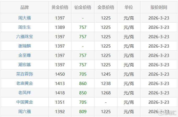 国内品牌金饰价钱也较昨日集体着落,单日跌超70元,多数报1400元/克下方,在3月初金价还浩繁高于1600元/克。