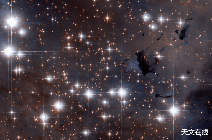 当你不雅察这张图俄顷,开端会阻拦到的是,你看到的光点数目广博,亮度互异,且感情丰富。较亮的光点周围有衍射尖峰和光晕,这标明在咱们的惯例千里镜不雅测中,它们是点源(而非扩展源)。此外,图像中出现的黑云明显位于整个光点的远景,它挡住了中心区域的整个布景光,但只挡住了角落区域的部分精炼,使得一些精炼(尽管轻捷)大约穿透过来。