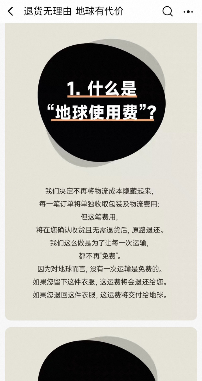 至于运脚去处,店铺称通盘未被退还的快递用度,将全额捐送礼SEE基金会的“1%地球税”环保公益花样,用于建筑山林、计帐河流等环保作为。店铺还暗示,这不是刑事包袱,而是一次邀请,徒然者在点击购买和退货之前皆请三念念,共同为减少网购对环境的影响而作为。