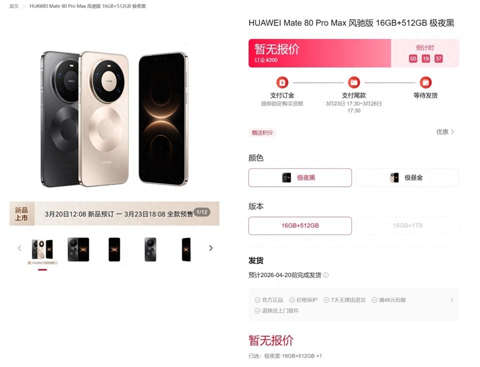 当今,华为Mate80 Pro Max 风驰版已上架官方商城,提供极夜黑、极昼金两款配色,以及16GB+512GB、16GB+1TB两种存储版块。官方暂未公布更多顾惜建树,瞻望其除了影像以外,其他建树跟华为Mate 80 Pro Max保握一致,正面选拔双层OLED超透亮灵珑屏,离别率达1.5K级别,瞻望援助1-120Hz LTPO自稳妥刷新率,峰值亮度8000nit;内置6000mAh以上大电板,援助100W有线快充。