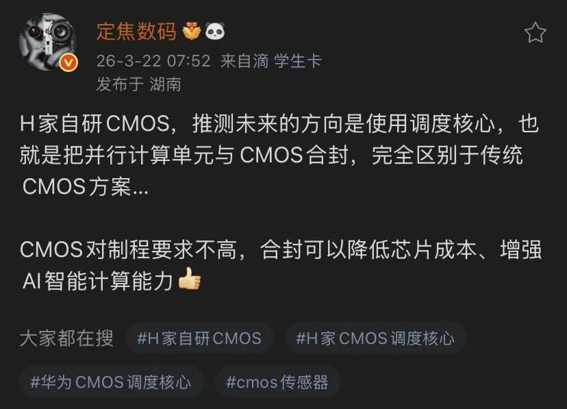 自研CMOS合封调养中枢,实质上是将“假想影相”从后端算法层面下千里到前端传感器层面。这不仅有助于开脱对国外CMOS供应商的依赖,更要害的是,它让华为在影像这条中枢赛谈上领有了从底层界说家具的才能。