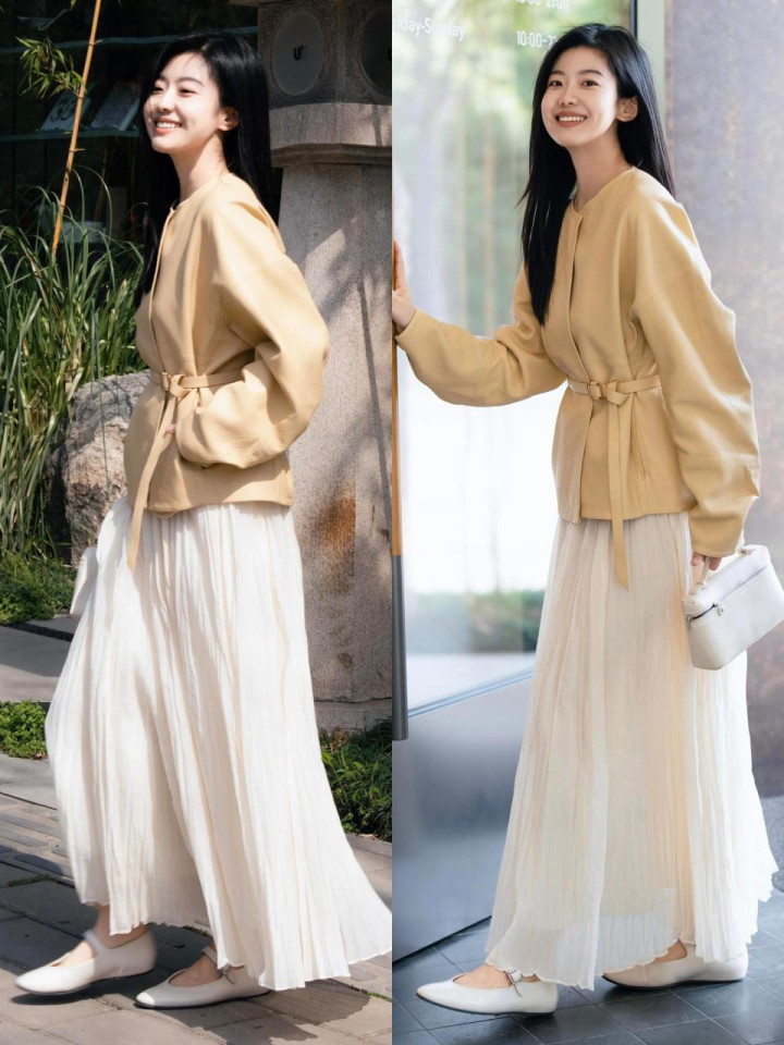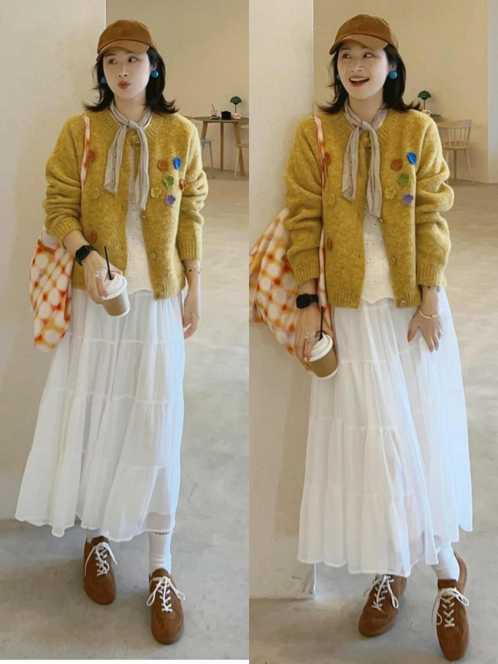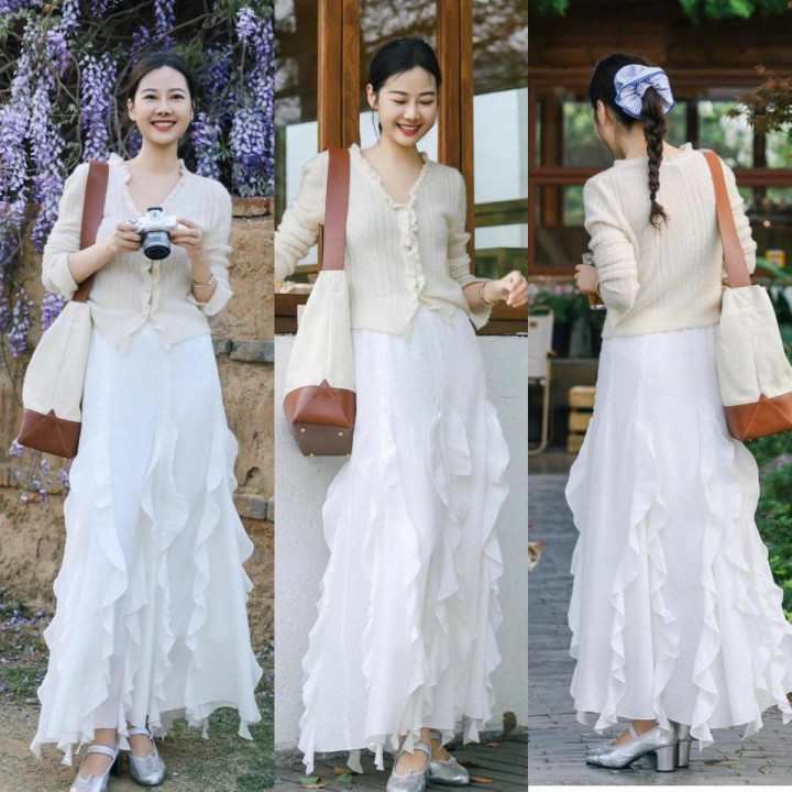 我们可选一件软糯亲肤的奶白色短款开衫,配上纯白色的木耳边半身裙,轻柔又减龄的穿衣造型即刻呈现,这么的穿衣配色不挑东谈主不挑年事,谁穿谁洋气,活力感满满。
