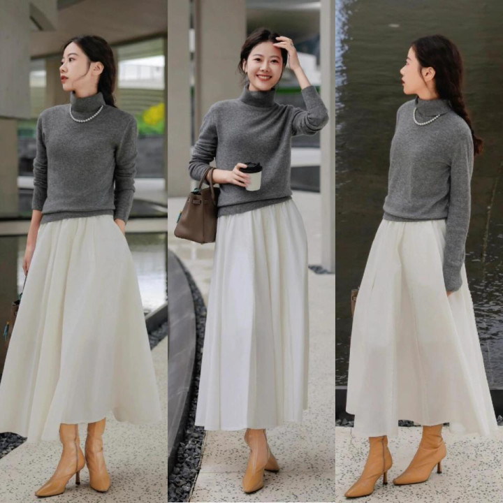 灰色与白色组合,经典耐看,基础的热诚穿搭不挑东谈主,辞谢易出错,若念念要穿露面绪,就需要挑一件辞谢易起毛起球的真挚毛衣,腰间蓄意留过剩量,穿在身上容易遮住躯壳赘肉。