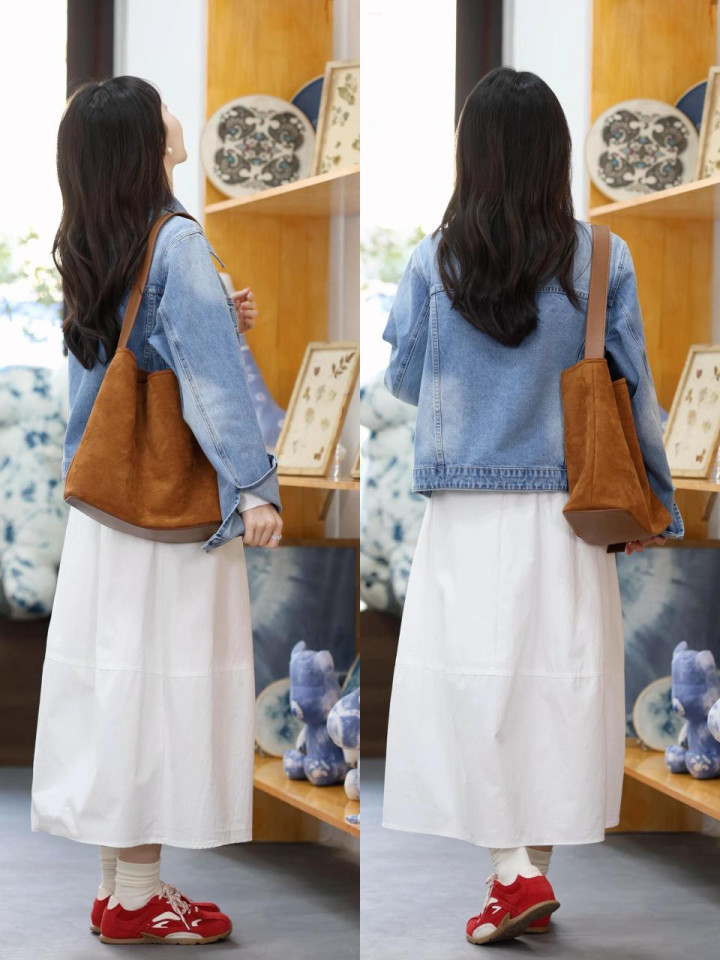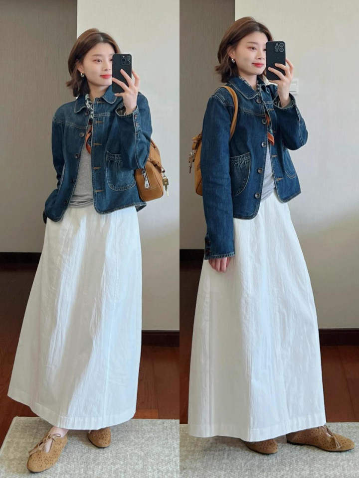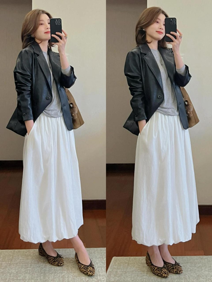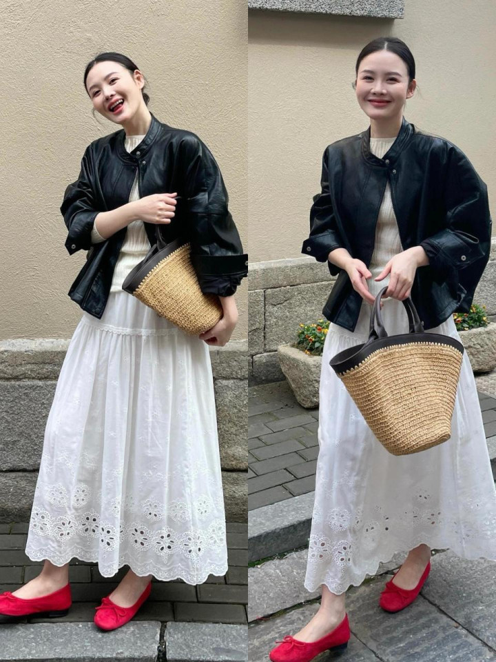 在这暖洋洋的春日,褪去悠闲的寒衣,选漂泊的白色半裙配真挚衫,轻柔又优雅,配上皮衣外衣利落通勤斯文,“白色半身裙”守章程,搭配不同上衣齐是简略作念到无声的均衡,百搭耐看。