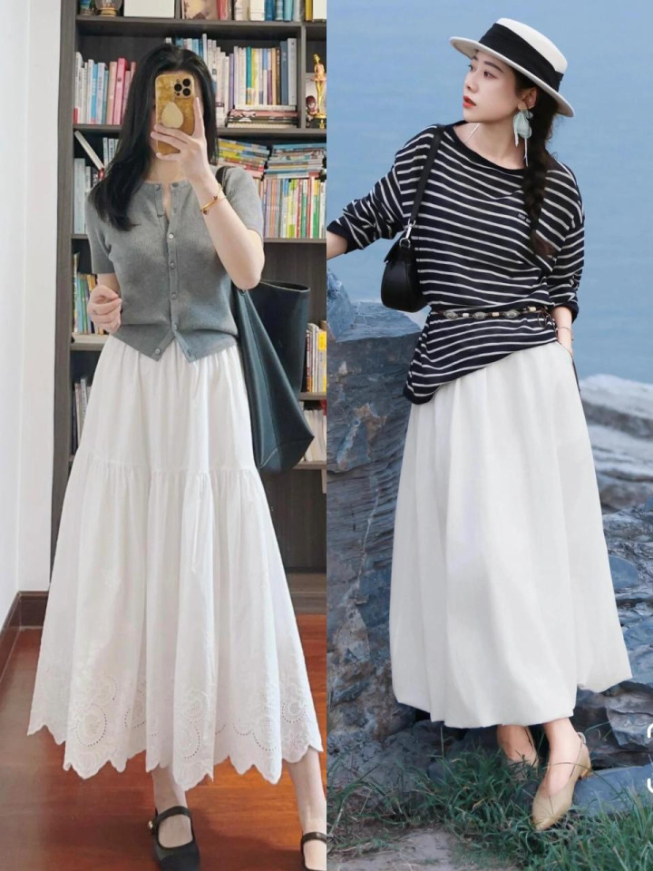 亚搏体育app中国最新版本 今春爆火的“白色半身裙”, 搭什么上衣齐洋气优雅!