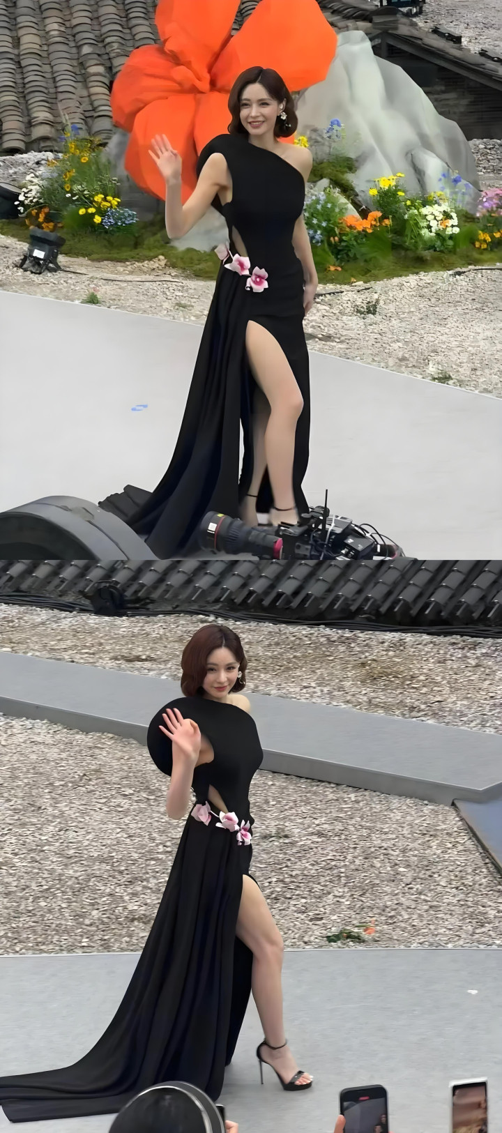 她一袭不合称斜肩黑裙,缱绻感皆备。玄色高开叉裙摆,不经意间清楚着性感与优雅;腰间点缀的几支嫩粉手工绢花,亚搏体育app恰到克己地冲破了纯黑的千里闷,为合座造型注入了春日独有的柔软睦息。