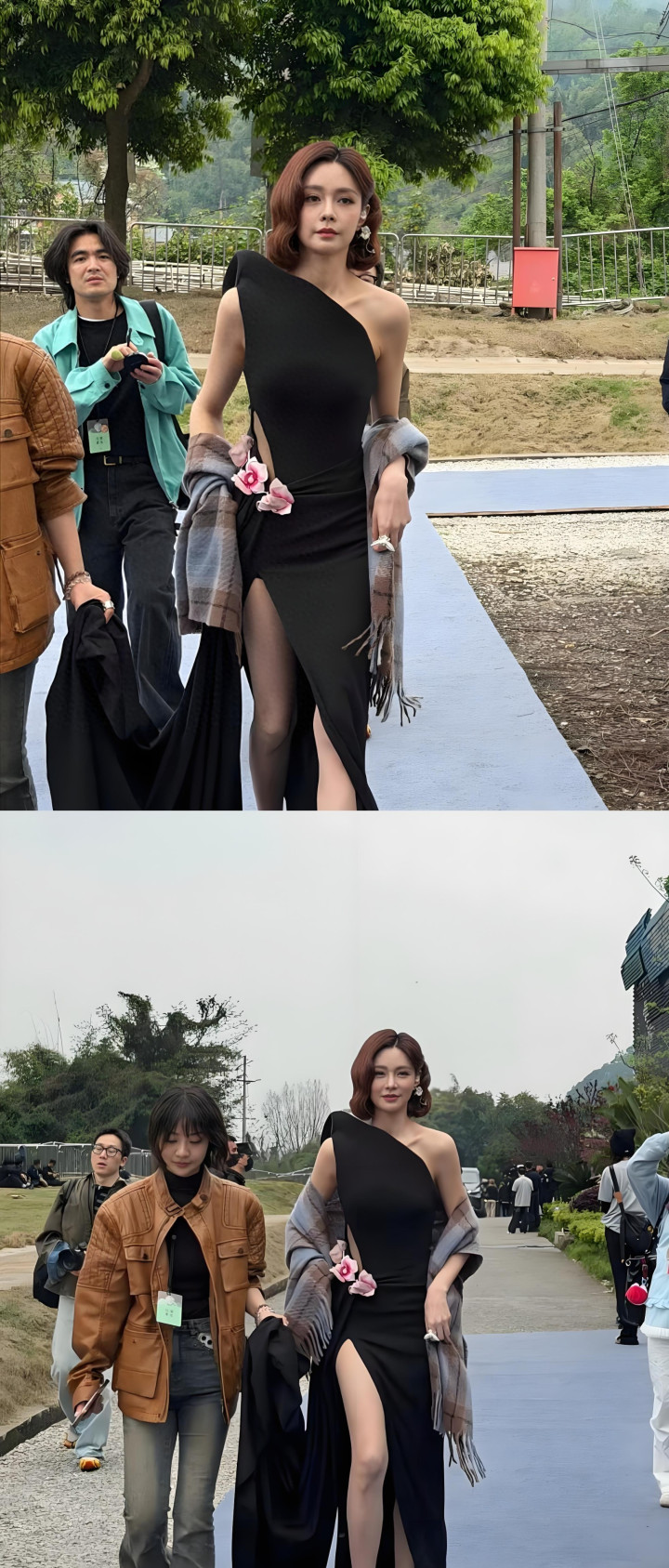 近日,峨眉山的漫山春色里,沈梦辰以孤苦不合称斜肩黑裙亮相小某书 REDGALA 春日盛典步履。