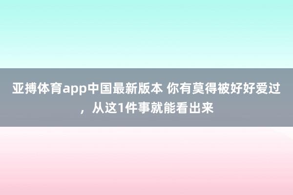 亚搏体育app中国最新版本 你有莫得被好好爱过,从这1件事就能看出来