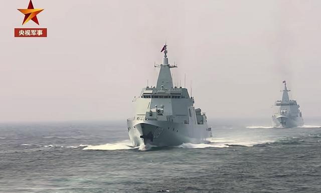 ▲两艘新锐055的威慑照实非归拢般