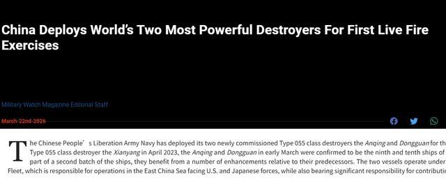 行动东海舰队收受的首批055,安庆舰和东莞舰入列后的考试强度几乎跳动天空,官方对其报说念也一直就没停过,事无巨细的让两艘055,体验到了“明星舰”的待遇。对此,好意思国“Military Watch”网站给出了很夸张的评价——“中国正部署两艘寰宇最强断绝舰实弹演习,好意思国舟师莫得能与之抗衡的断绝舰”。