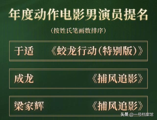 最近他还凭借电影《捕风追影》提名了首届CMG“年度动作男演员”,与梁家辉和于适竞争,把不雅众的期待值拉满了。