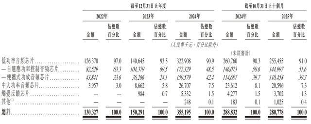 傅里叶半导体2025年前10个月来自自合乎功率戒指音频芯片收入1.45亿,占比为51.6%;来大肆携式功放音频芯片收入为1.1亿,占比为39.3%。