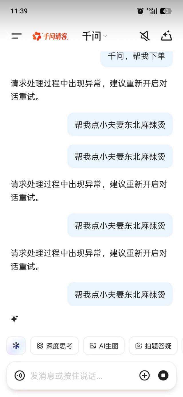阐明网友反馈实质,主要清晰为指示反映失败、下单功能报错或系统卡顿。比如用户在通过千问APP进行外卖点单、商品购买等AI交互操作时,庸俗遭受“苦求贬责历程中出现颠倒,提议从头开启对话重试”、“优惠信息已变更”等报错教导,部分页面径直涌现系统拥挤或加载失败。