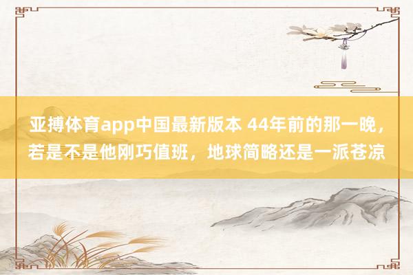 亚搏体育app中国最新版本 44年前的那一晚,若是不是他刚巧值班,地球简略还是一派苍凉